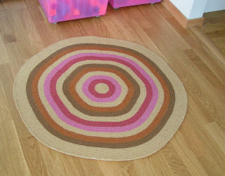Helt virkad: Randig rund matta